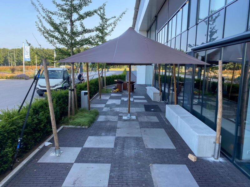 Crea sin esfuerzo una elegante cubierta en espacios estrechos y alargados con la carpa beduina de 4,5 x 15 m de Eurostretch.